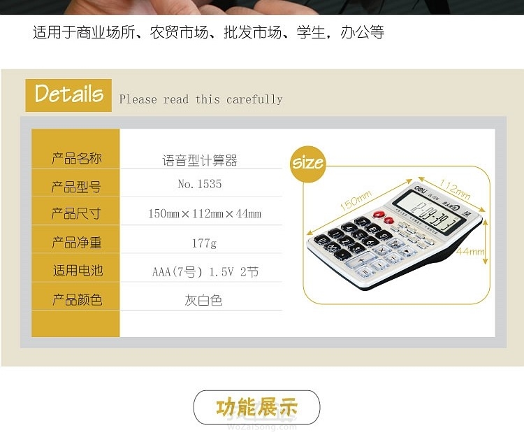 得力1535语音型计算器(银色)(台)
