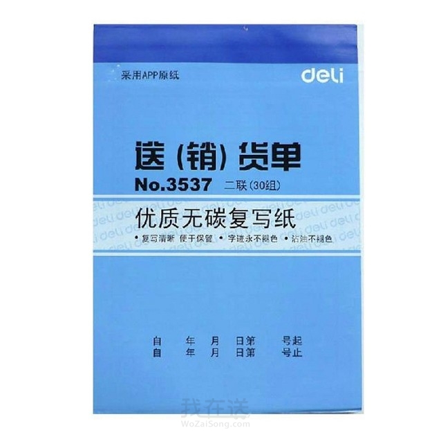 得力3537无碳复写单据(蓝)87*175mm财务单据
