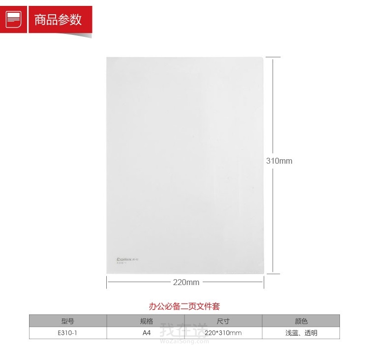 齐心 E310-1 超省钱二页文件套 A4(透明)