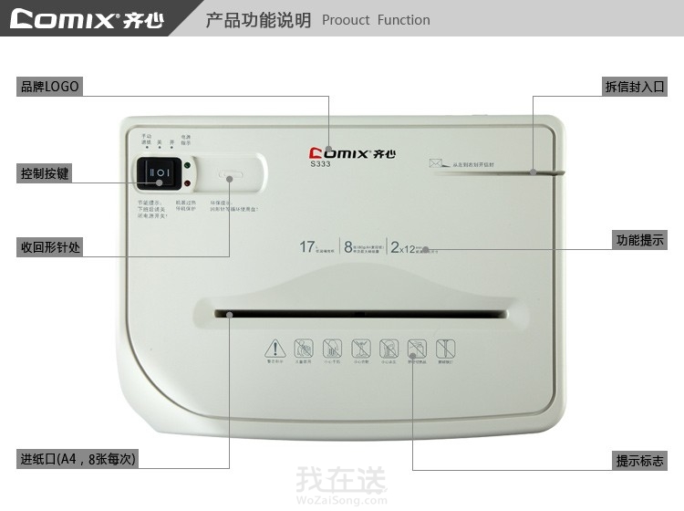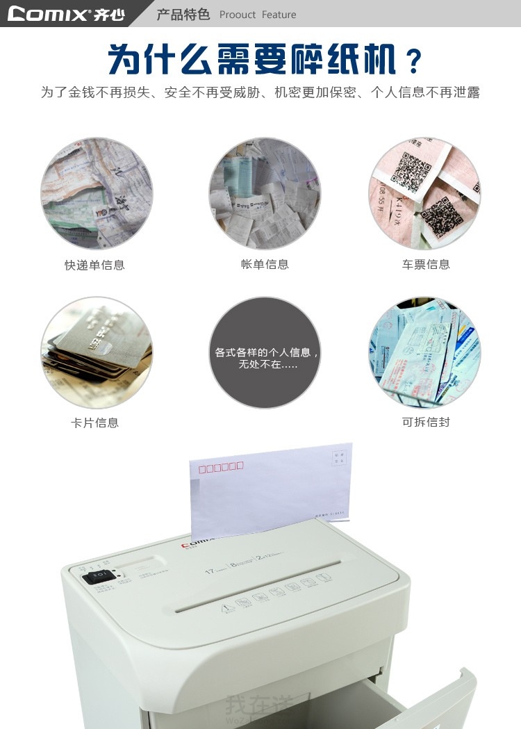 齐心 S333 强力保密型碎纸机 2×12mm/8张纸