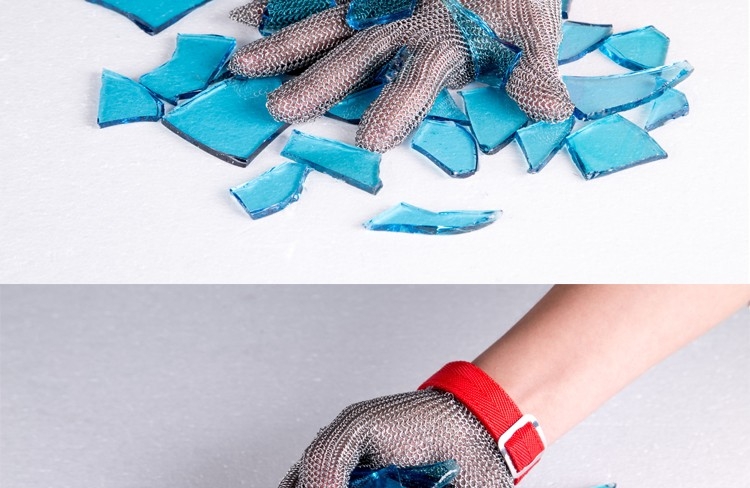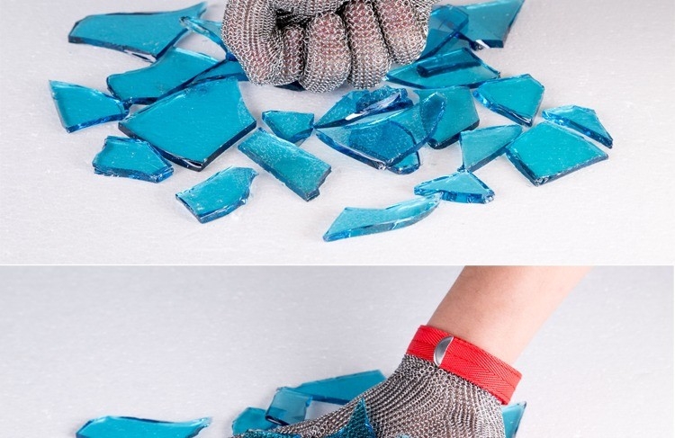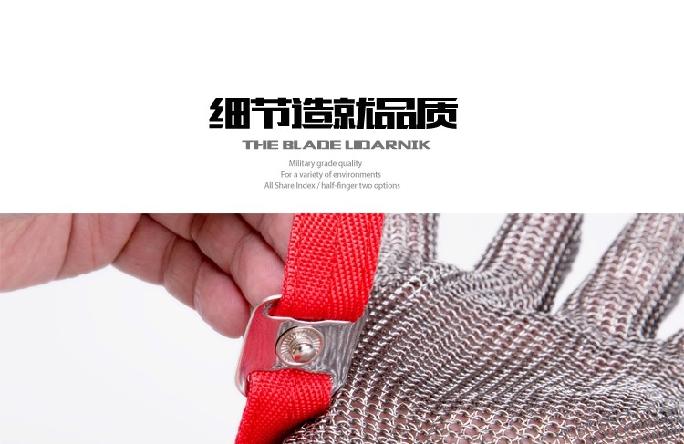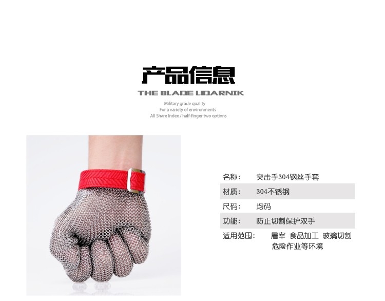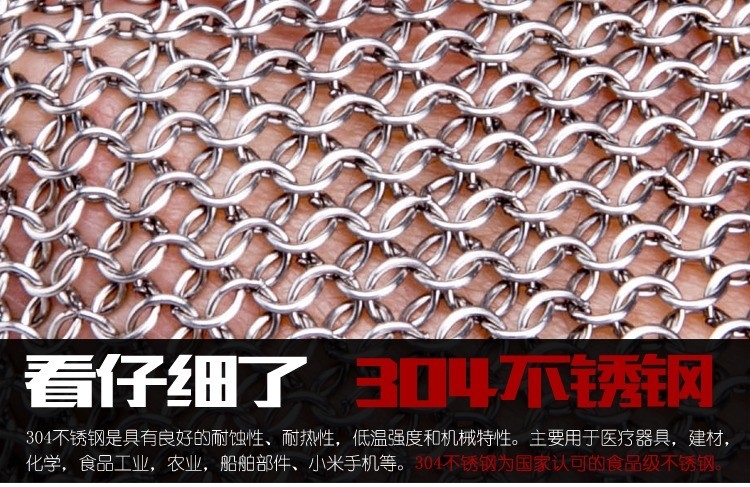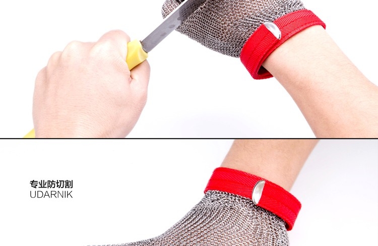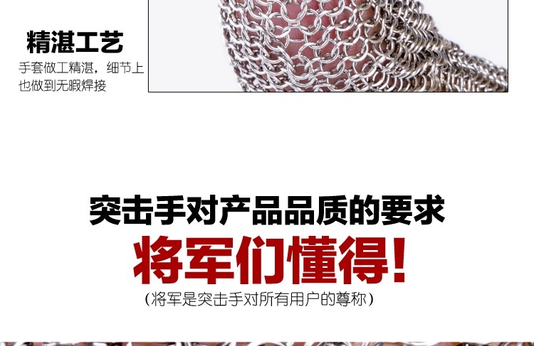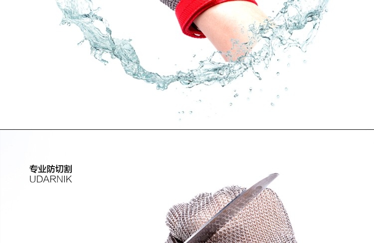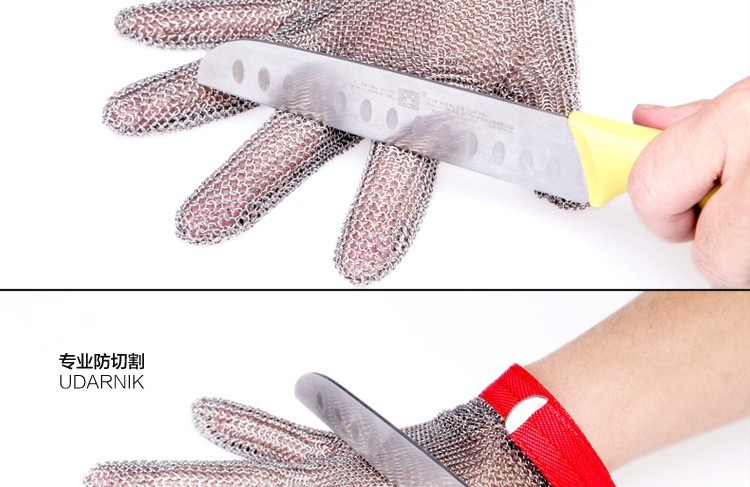 udarnik/突击手防护手套 防切割电锯屠宰裁剪杀鱼金属钢丝环铁手套 单只 均码