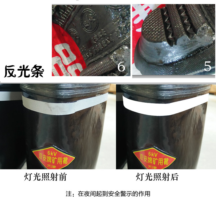 5. 穿用时应随时注意大底磨损情况,大底花纹磨掉后,尤其是露出绝缘浅色层后,则不应使用。