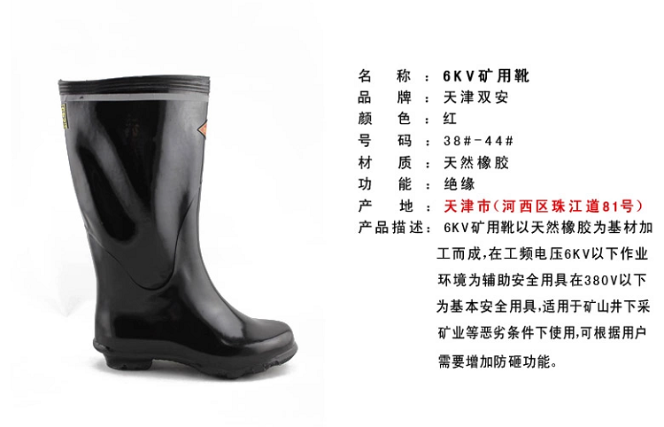 2. 主要适用于采矿作业的辅助安全用具,操作电压在380V及以下环境内穿用。