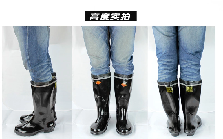 4. 作业时应将裤口套入靴筒内,勿与各种油脂、酸、碱、有腐蚀性物质接触且防锋锐金属的机械损伤。
