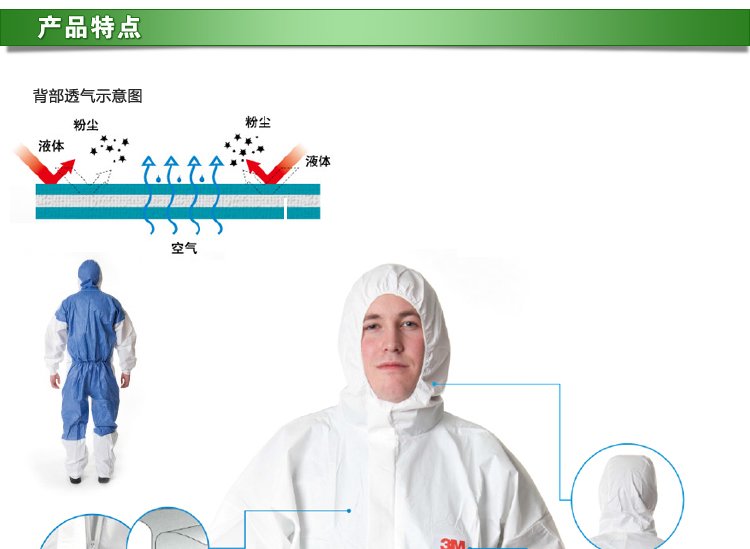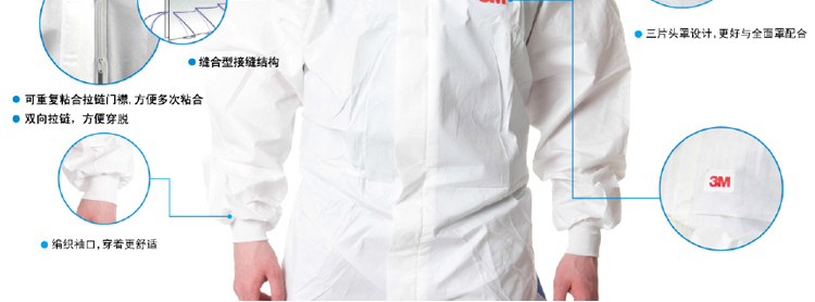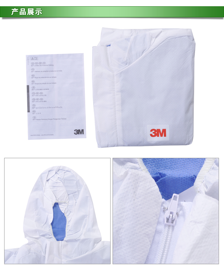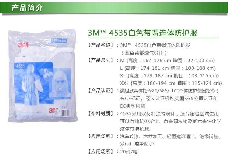 3M 4535白色带帽连体防护服