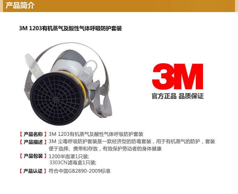 • 商品名称:3M 1203有机及酸性气体防护套装