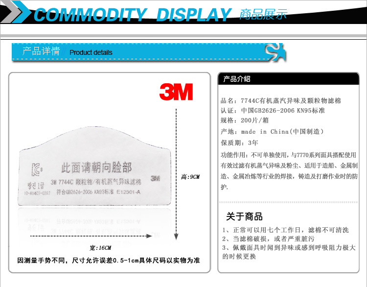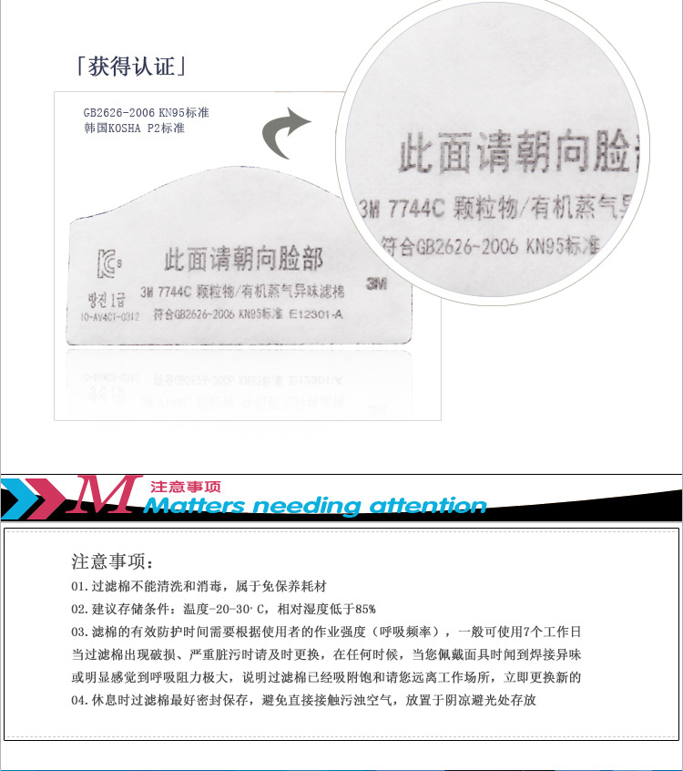 • 商品名称:3M 7744C 颗粒物/有机蒸气异味过滤棉