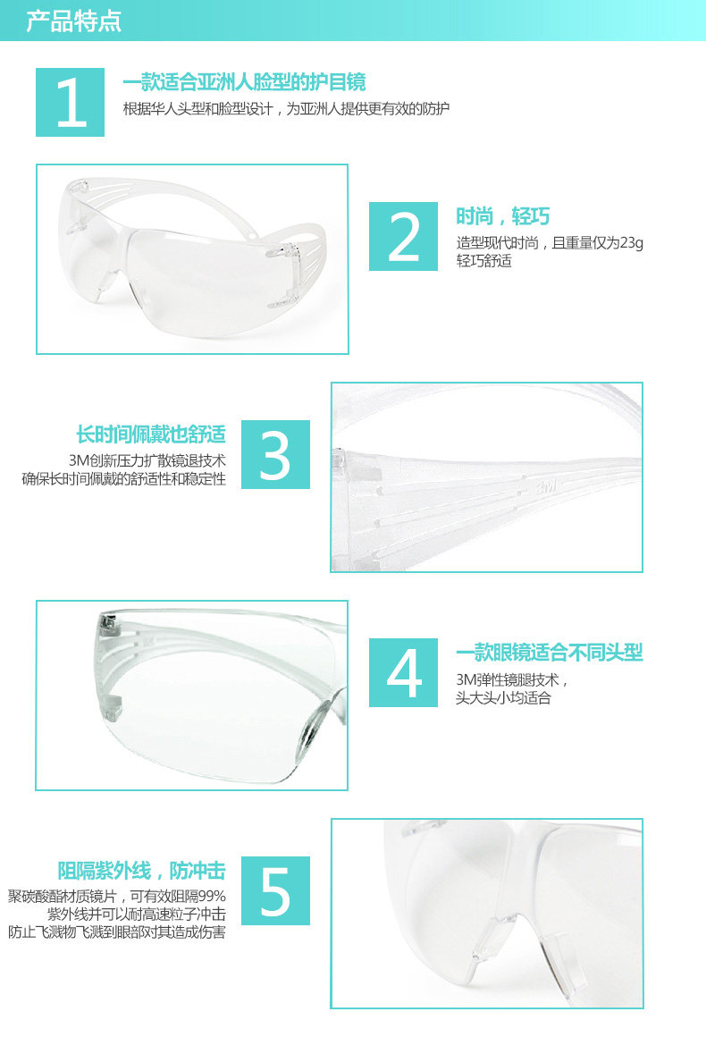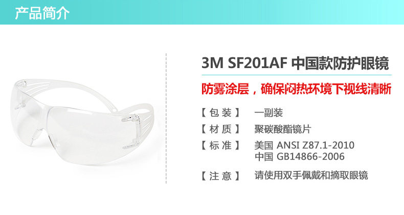 3M SF201AF中国款安全眼镜(透明防雾)