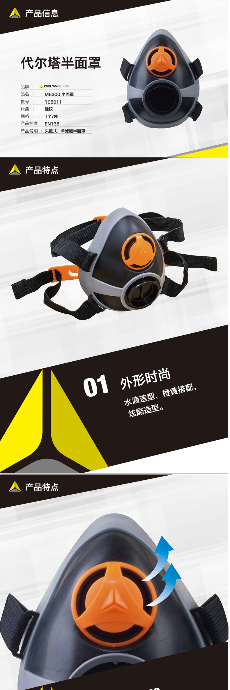 • 商品名称:代尔塔 105011 硅胶半面罩