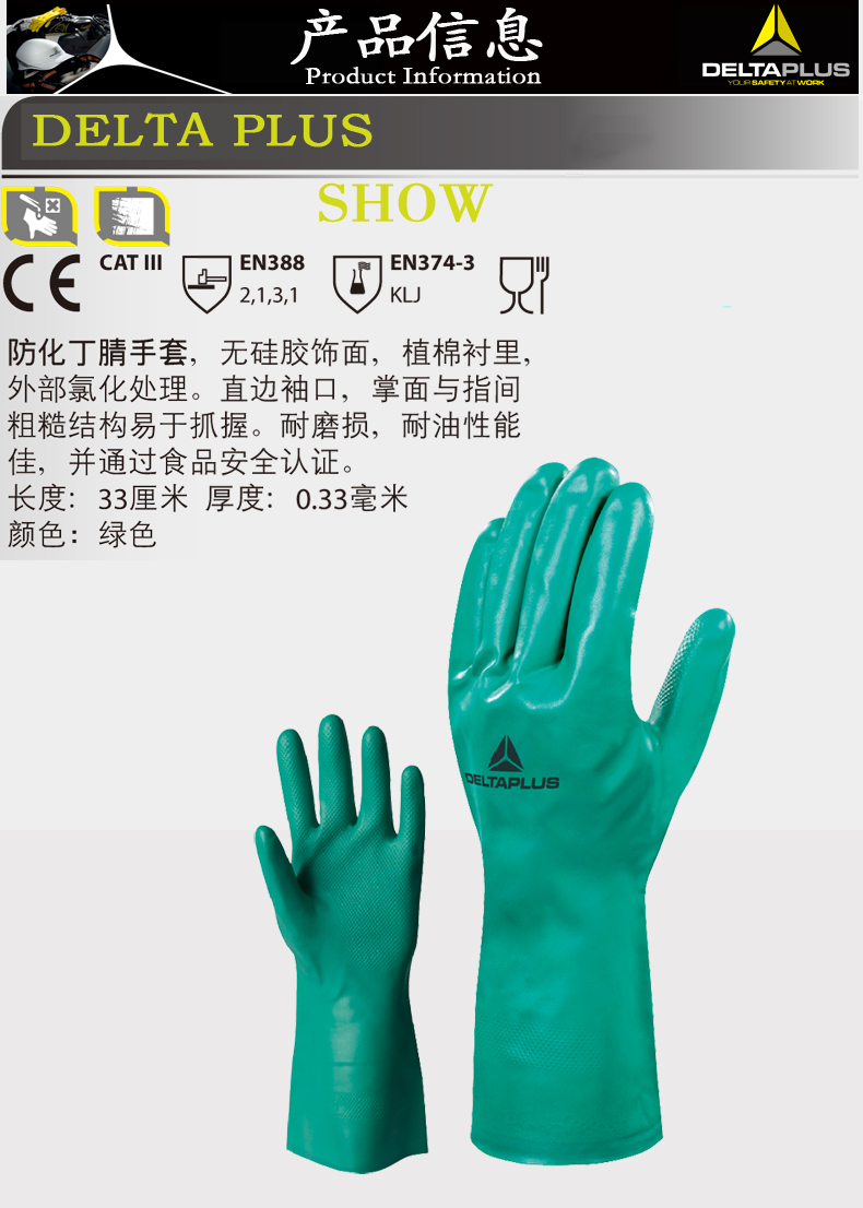 • 商品名称:代尔塔 201801 丁腈防护手套