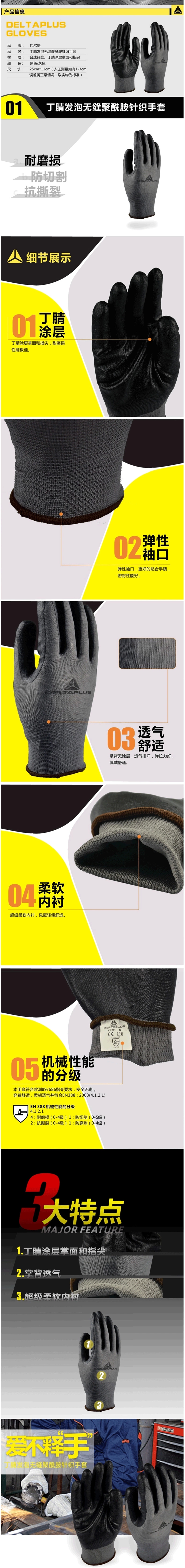 • 商品名称:代尔塔 201723 乳胶涂层手套