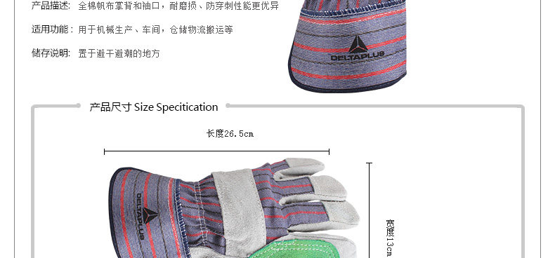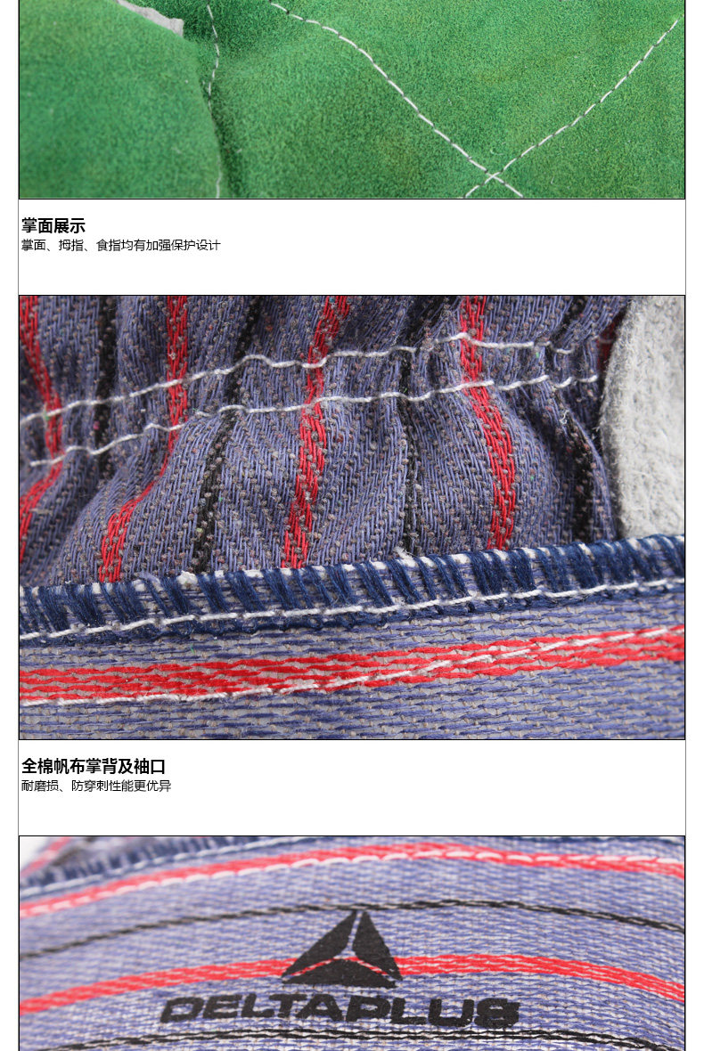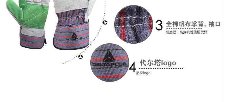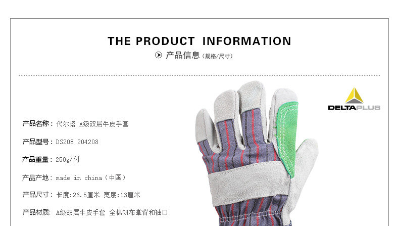 代尔塔 204208 双层牛皮防护手套