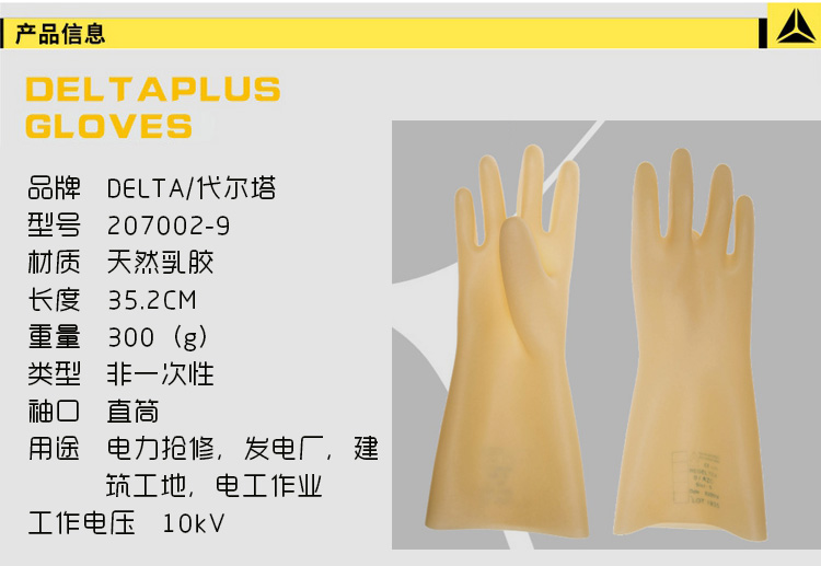 • 商品名称:代尔塔 207002 10KV绝缘手套
