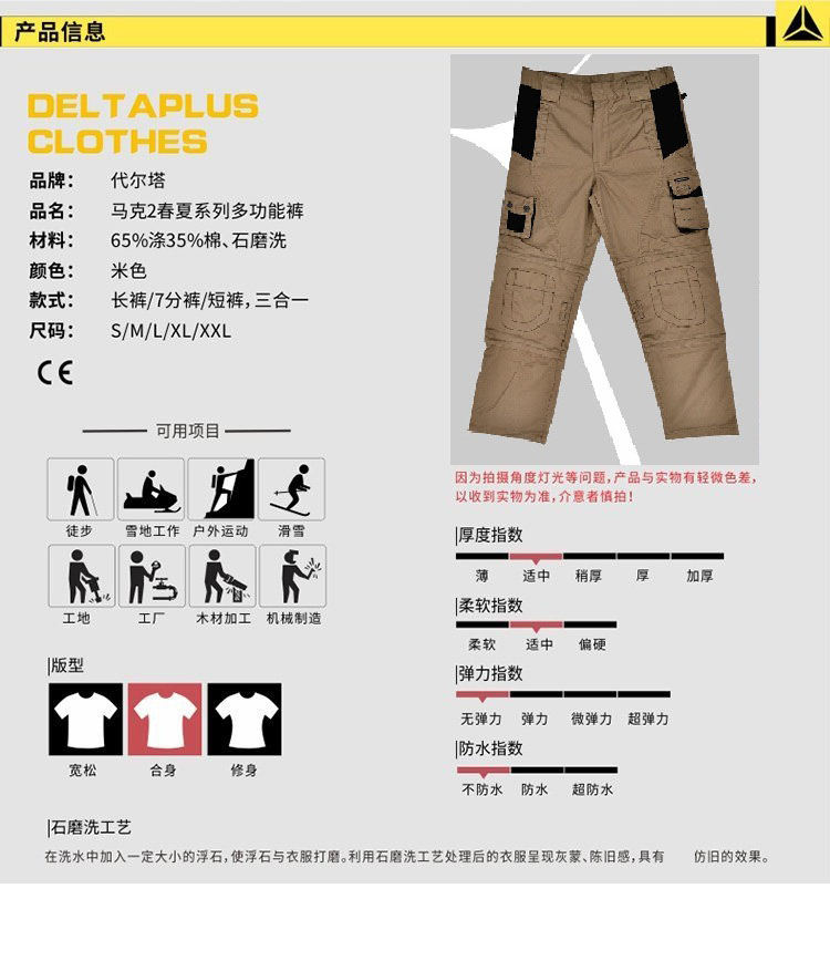 • 商品名称:代尔塔 405333 马克2春夏三合一工装裤