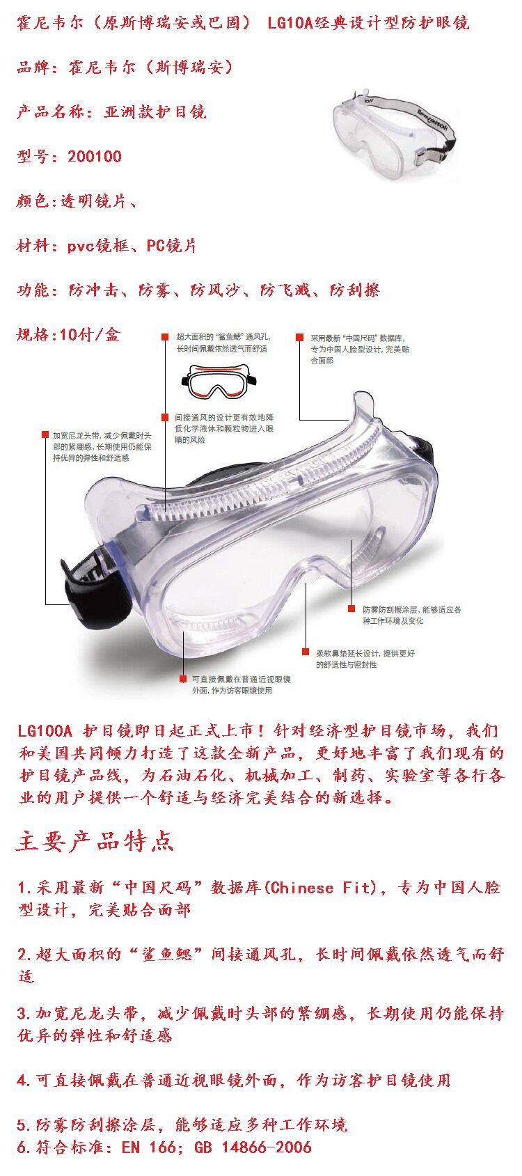 • 商品名称:霍尼韦尔 LG100A护目镜