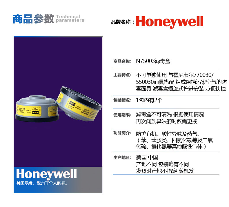 • 商品名称:霍尼韦尔N75003防有机酸性气体滤毒盒