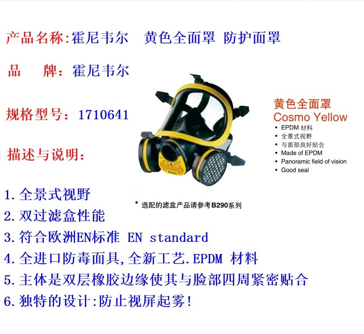 • 商品名称:霍尼韦尔1710641黄色进口防毒全面罩