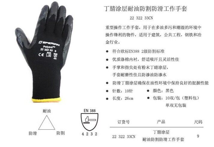 • 防滑丁腈涂层确保手套在油性环境中保持良好的抓握性能