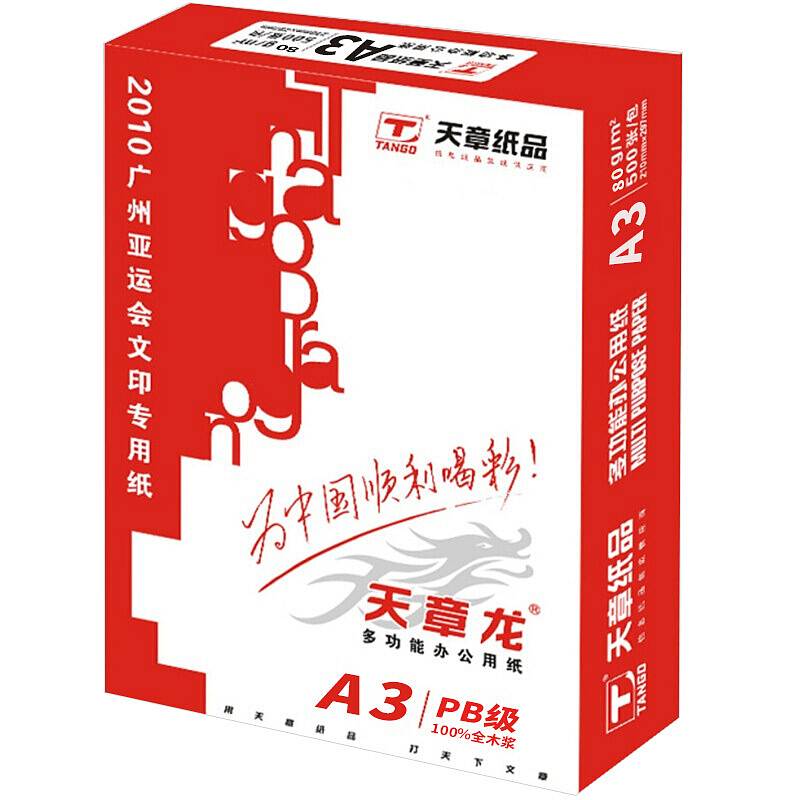 天章龙A3/70G复印纸500张/包,5包/箱(箱)