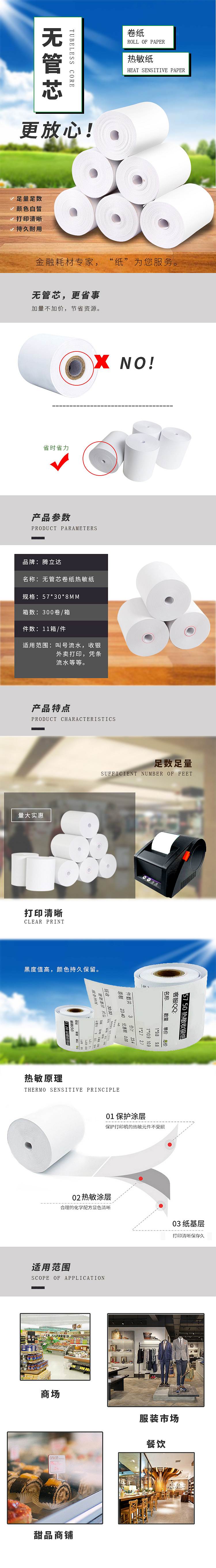 腾立达BZ无管芯空白热敏纸57x30x8mm小票纸流水纸300卷/箱 11箱/件