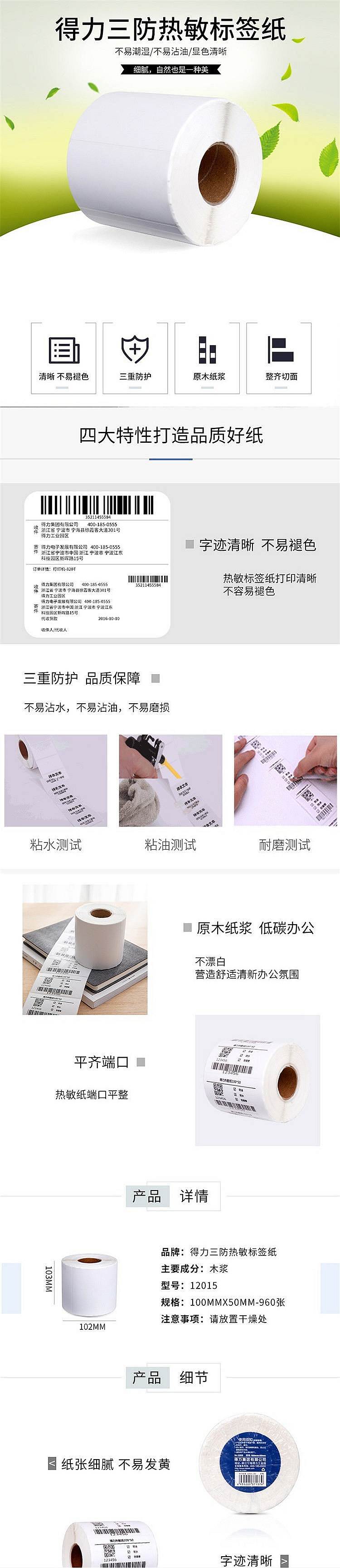 得力12015三防热敏标签纸(100*50mm-960张)(白)(1卷/筒)