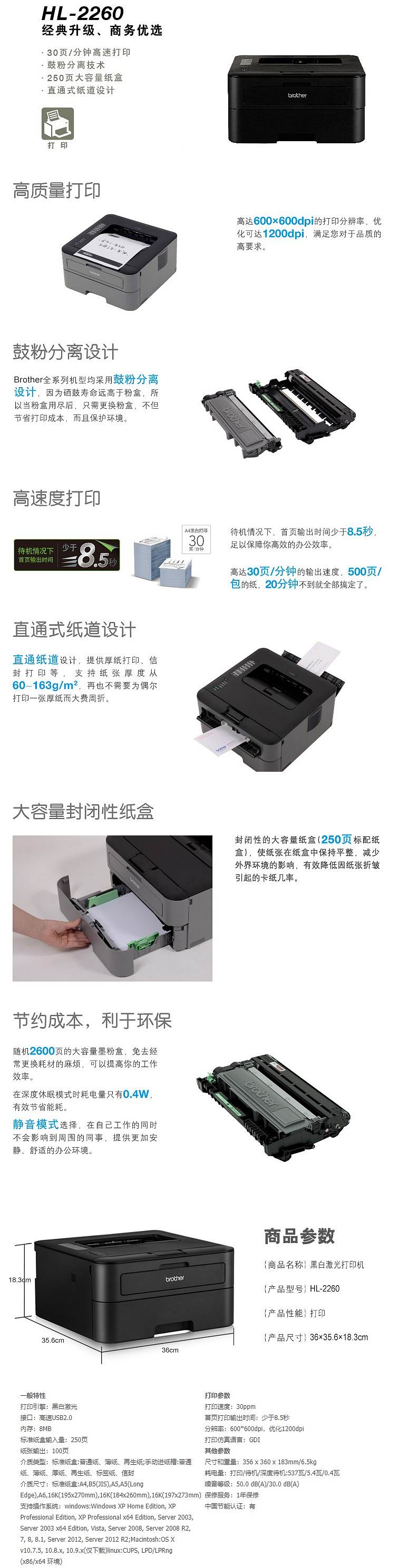 兄弟 2260 黑白激光打印机 黑 三年免费上门维修服务 (单位:台)