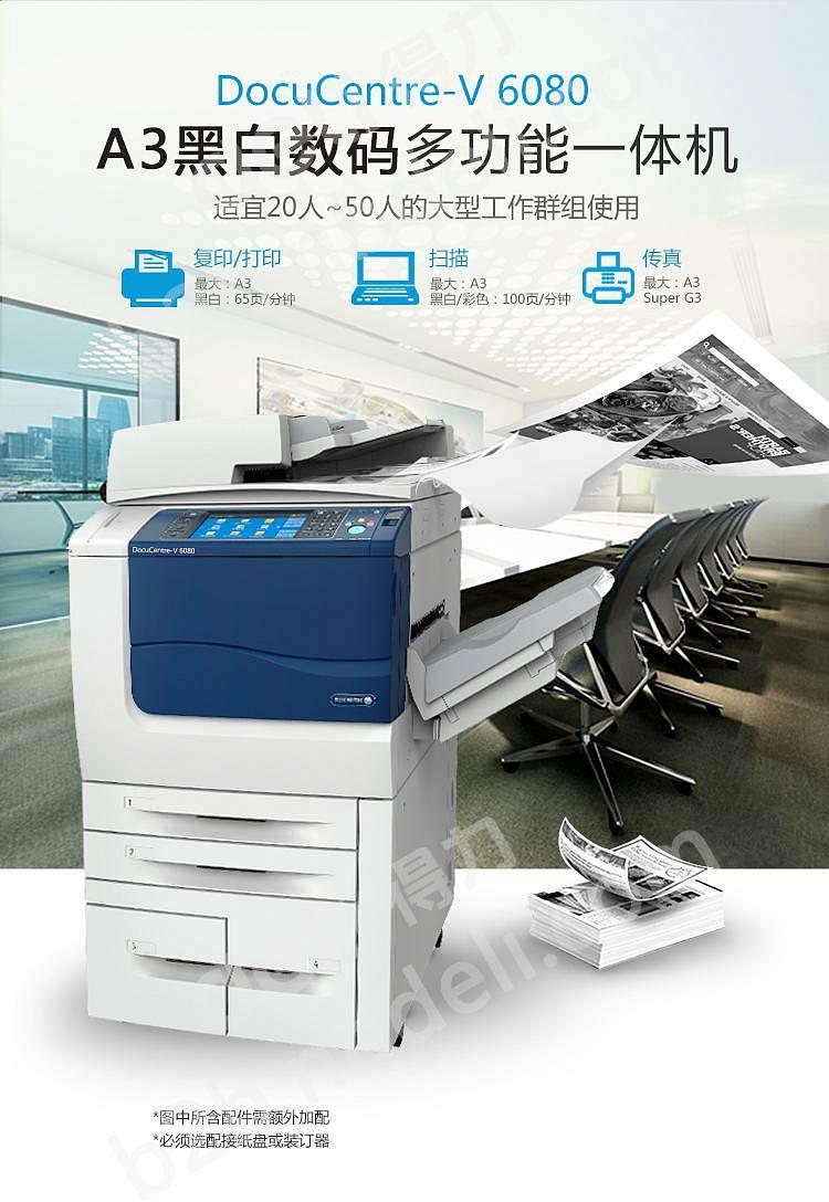 富士施乐DC-V6080CP黑白复合机(四纸盒+双面器+输稿器+扫描组件+侧接纸盘)(台)