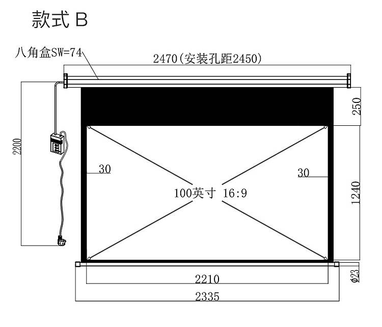 坚果 100英寸 菲涅尔抗光硬幕幕布16:9(副)