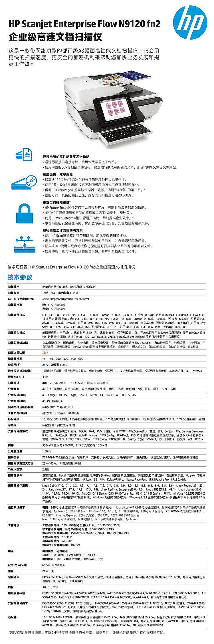 惠普(HP) N9120 fn2 平板+馈纸式扫描仪A3(台)