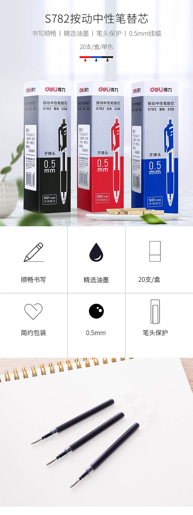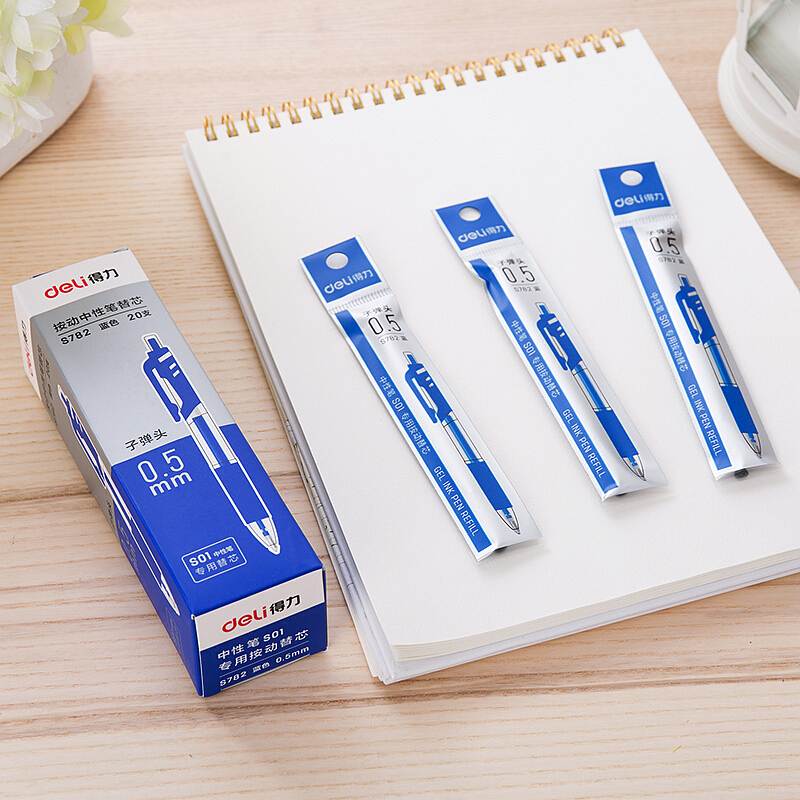得力(deli)S782按动中性笔替芯0.5mm子弹头(单位:支)蓝