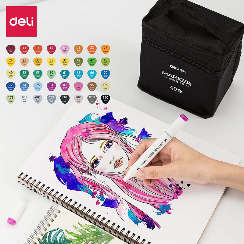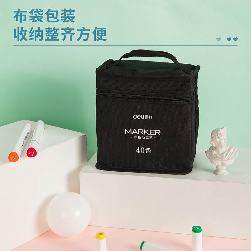 得力70807-40色布袋装白色三角杆彩色马克笔(混)(40色/袋)